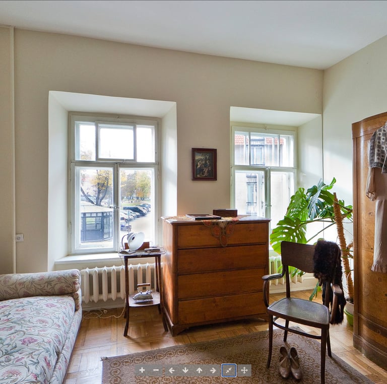 Autentiški architektūriniai elementai – kiemas, fasadas, lubos, laiptai, langai, medinis parketas, koklių ir metalinės krosnys – sukuria unikalią, išlaikytą to laikmečio atmosferą, leidžiančią lankytojams pasinerti į Vilniaus praeitį.